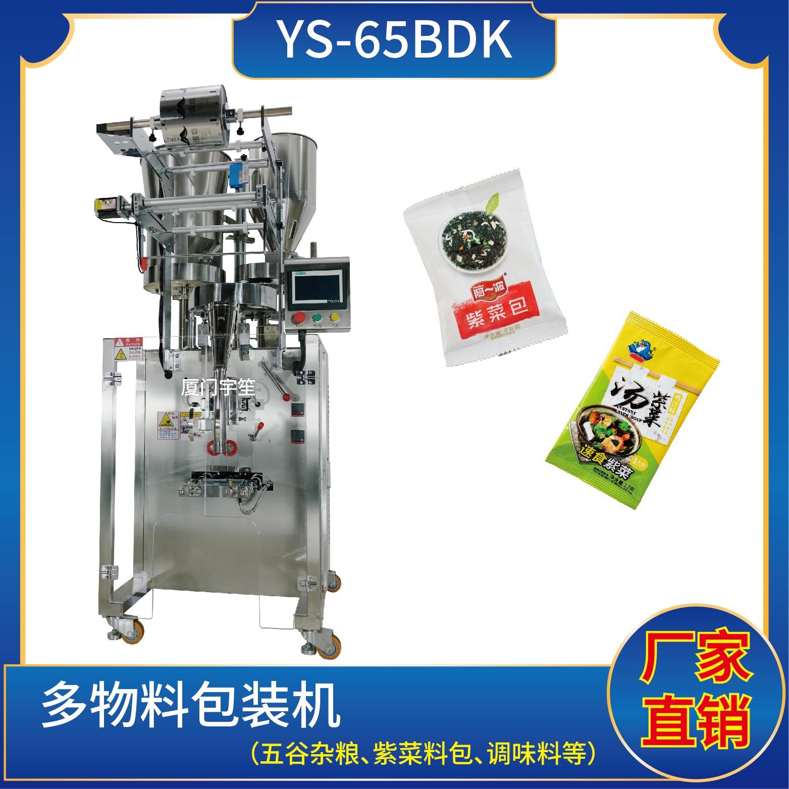 YP-65BDK 紫菜料包包裝機特 點 1、適用于食品、醫(yī)藥、化工、化妝品行業(yè)中顆粒、粉劑、液體、醬料等物品的組合計量包裝。2、可自動完成制袋、計量、下料、封合、分切、計數(shù)、且可根據(jù)客戶要求配置打印批號等功能。3、觸摸屏操作,PLC 控制,驅動步進電機控制袋長,性能穩(wěn)定、調整方便、檢測準確。智能式溫控儀,PID調節(jié),…
